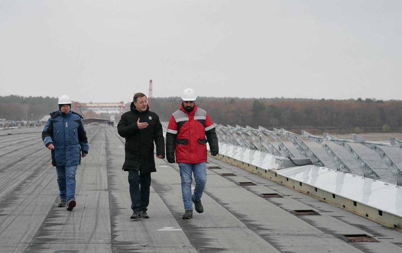В пятницу, 27 октября, губернатор Дмитрий Азаров проинспектировал ход работ на площадке строительства трассы «Обход Тольятти» с мостовым переходом через реку Волгу в составе международного транспортного маршрута «Европа – Западный Китай». Также глава региона провел совещание с руководителями подрядных организаций, выполняющих работы на объекте, и профильных министерств.