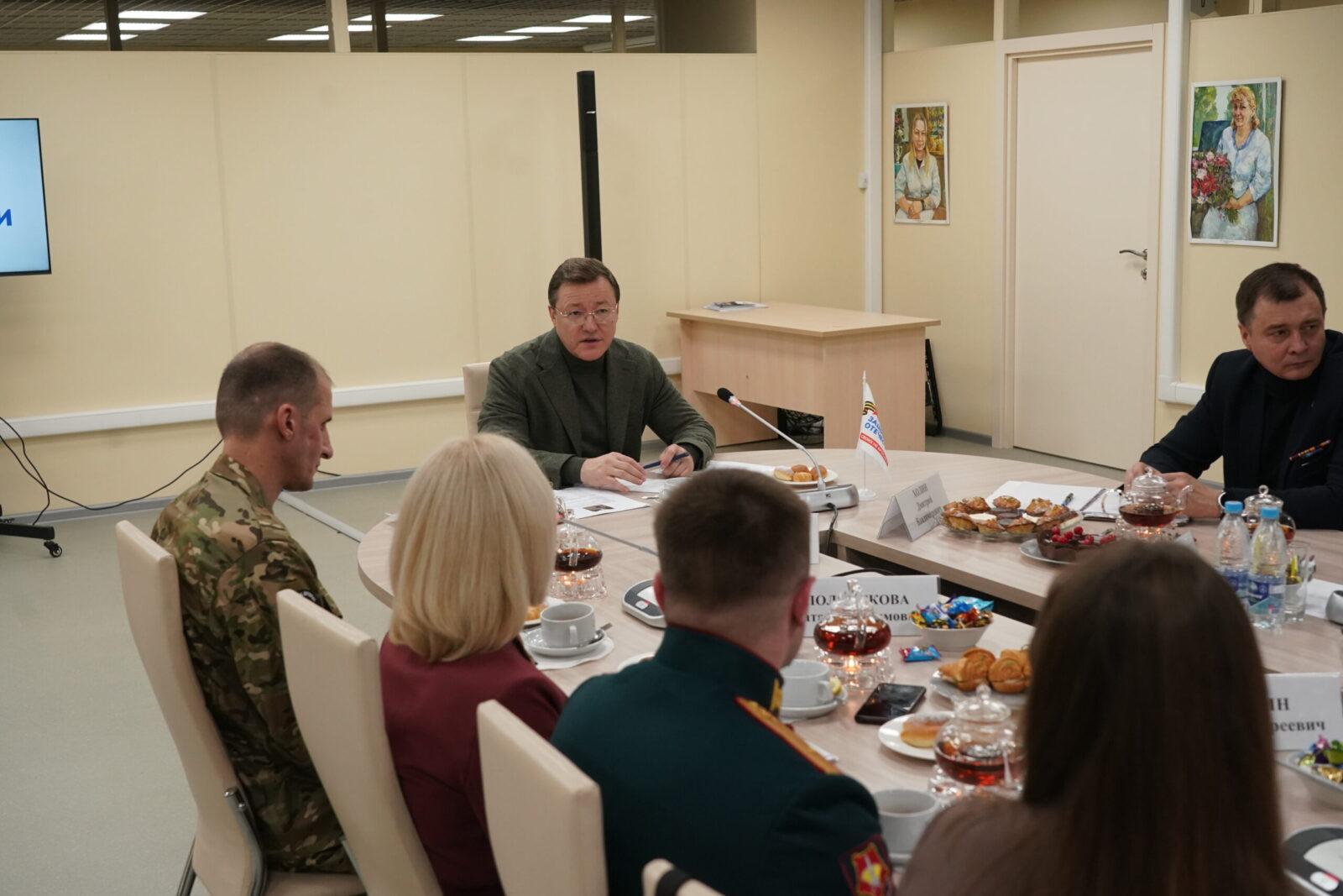 «Я рад приветствовать наших ветерановбоевых действий, членов семей военнослужащих в фонде «Защитники Отечества». Знаю, что есть вопросы, которые требуют моего внимания и решений, выходящих за рамки стандартных подходов и отработанных алгоритмов. Министры Правительства Самарской области, главы муниципальных образований нацелены на самую активную работу с семьями военнослужащих, ветеранами боевых действий для того, чтобы там, где необходимо получить дополнительные компетенции. Разные вопросы бывают – по трудоустройству, образованию, устройству в университеты, колледжи, школы, детские сады. Все вопросы мы готовы рассмотреть», – отметил губернатор в начале беседы.
