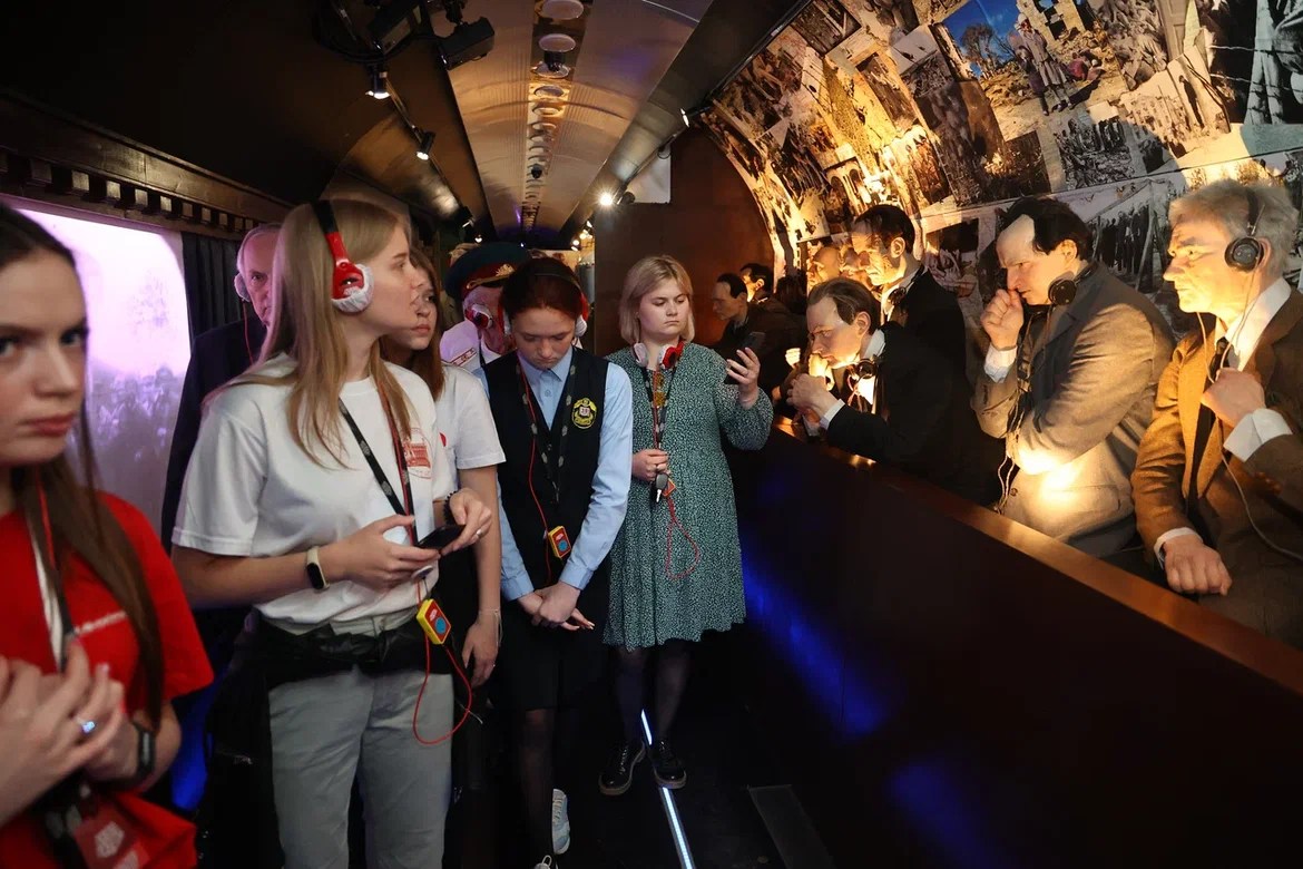 «Поезд Победы» — первая в мире интерактивная выставка с максимальным эффектом присутствия, размещенная в движущемся поезде. 10 тематических вагонов посвящены отдельным событиям или вехам Великой Отечественной войны.